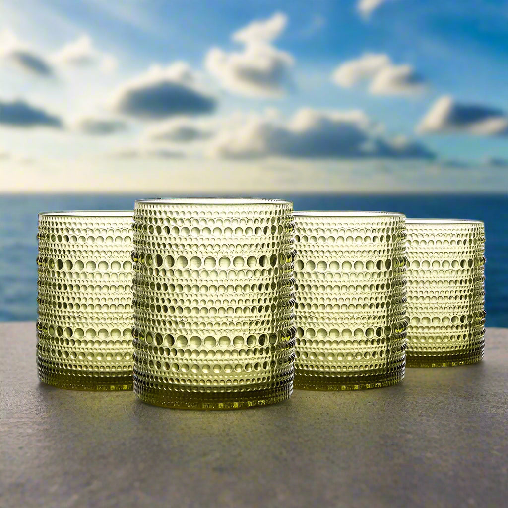 - Premium lead-free glass with a subtle sea-mist finish