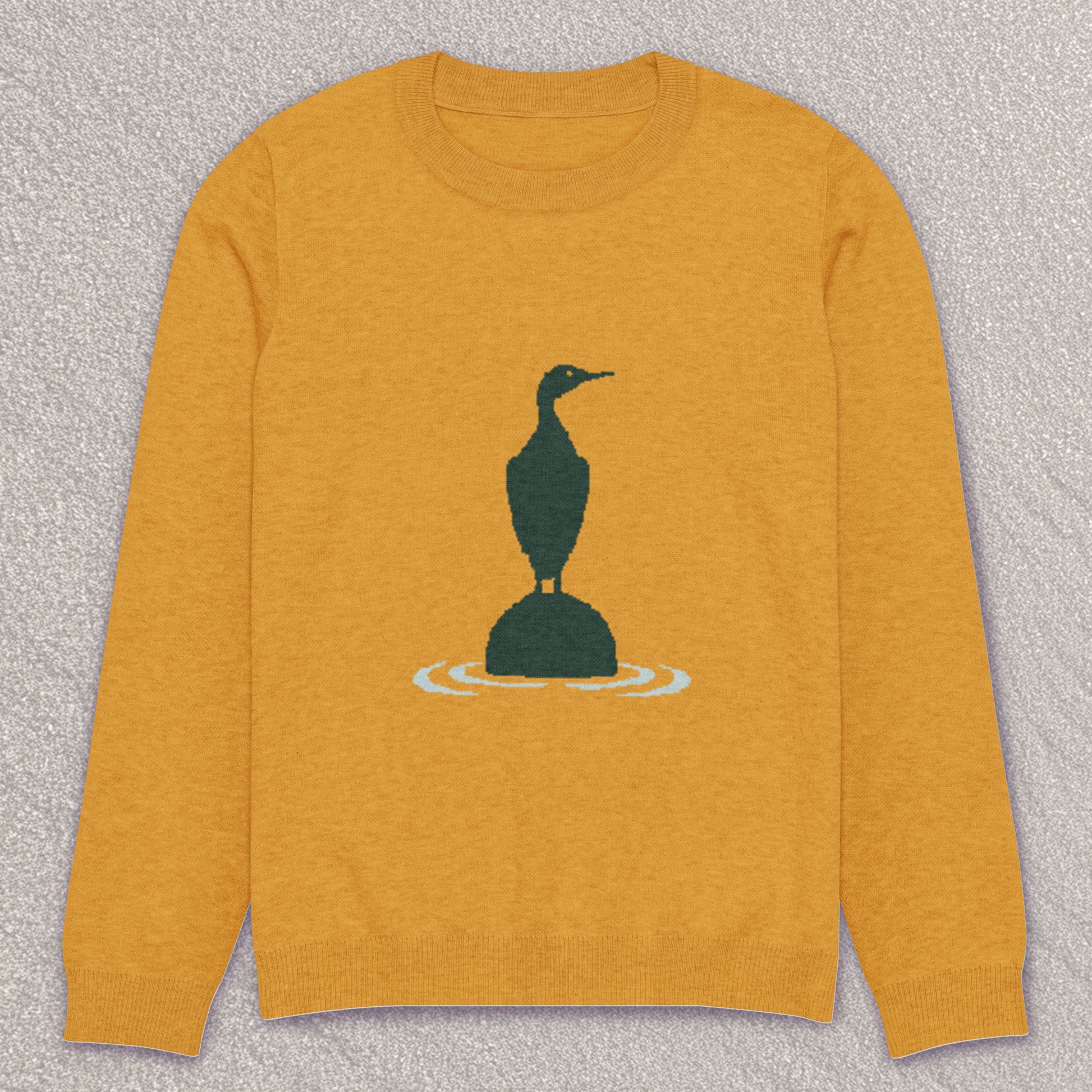This extra-soft knit sweater helps you look put-together while staying warm and comfortable. The hand-illustrated cormorant graphic captures the essence of harbor life with simplicity and style.